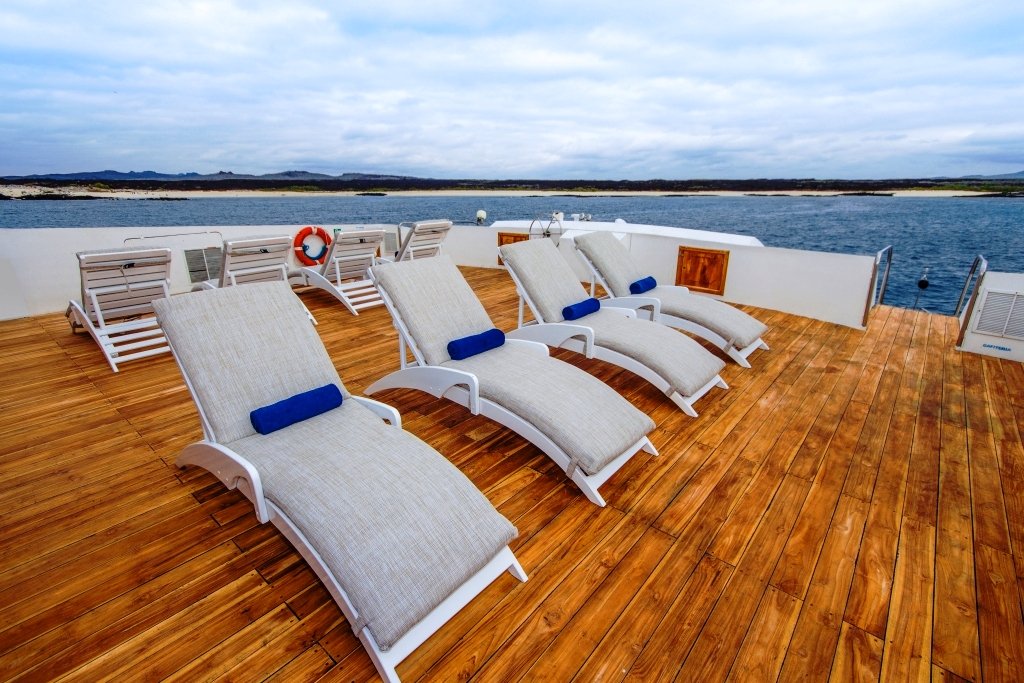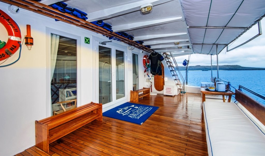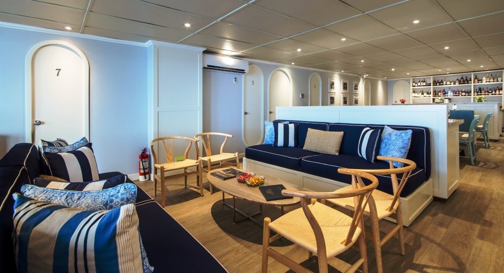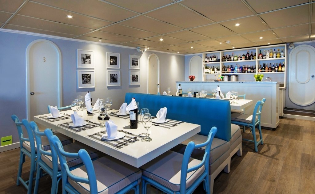 There is a dining room, a well-stocked bar, and a conference room with TV, DVD player, projector, board games, and a library with books and DVDs. At night, you can admire the starry sky from the observation deck. A skilled international chef is on board, with the option to sample local dishes.