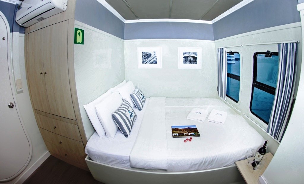 This modern catamaran was built in 2005 and thoroughly renovated in September 2025. The vessel has eight Ocean View double cabins, some with two single beds and others with a double bed. All cabins are equipped with air conditioning and large windows. Each cabin has a private bathroom with hot and cold water, toilet, and shower.