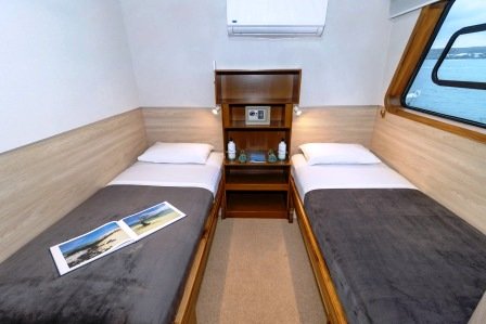 The Koln is a first-class yacht. On the lower deck, it offers 5 twin cabins and 1 bunk bed cabin (No. 2). On the upper deck there are 2 cabins with a double bed (Nos. 7–8) and 2 twin cabins (Nos. 9–10). All cabins feature a private bathroom, safe, air conditioning, and hair dryer. Wi-Fi is available throughout the vessel. There are several beautifully furnished common areas, including the dining room, a salon, a lounge, a bar, and both observation and sun decks. The ship also offers a beautiful bar, a sundeck, and a comfortable lounge.
