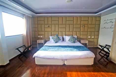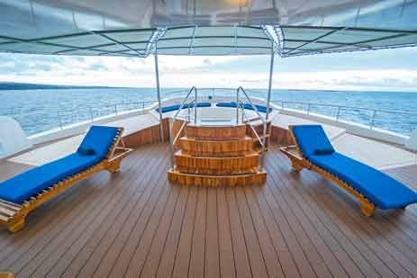 This modern catamaran was launched in September 2015 and was then thoroughly renovated in 2019. The ship has 9 spacious cabins, all with private balconies and private bathrooms. On the main deck there are two suites and two double cabins. On the upper deck you will find another four double cabins and one single cabin. On the sun deck you can enjoy the sun while relaxing in the jacuzzi or on one of the beach beds.