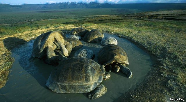 Along the climb to Alcedo Volcano you will find the largest population of wild giant tortoises in Galapagos. Most of the beautiful pictures of giant tortoises you saw were taken here. The landscape with its steaming sulfur fumes, the crater with a diameter of seven kilometers, the lava flows and the many bird species make the climb worthwhile.